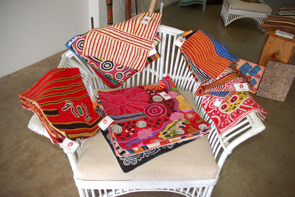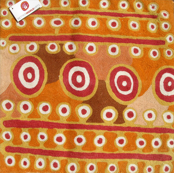 | Assorted Baskets from different Art Centres | Judith Inkamala Hermannsburg Potter | Mantuwa George Design Woollen Cushion Cover 12in (30cm) $39.00 Inc postage MGE142 |